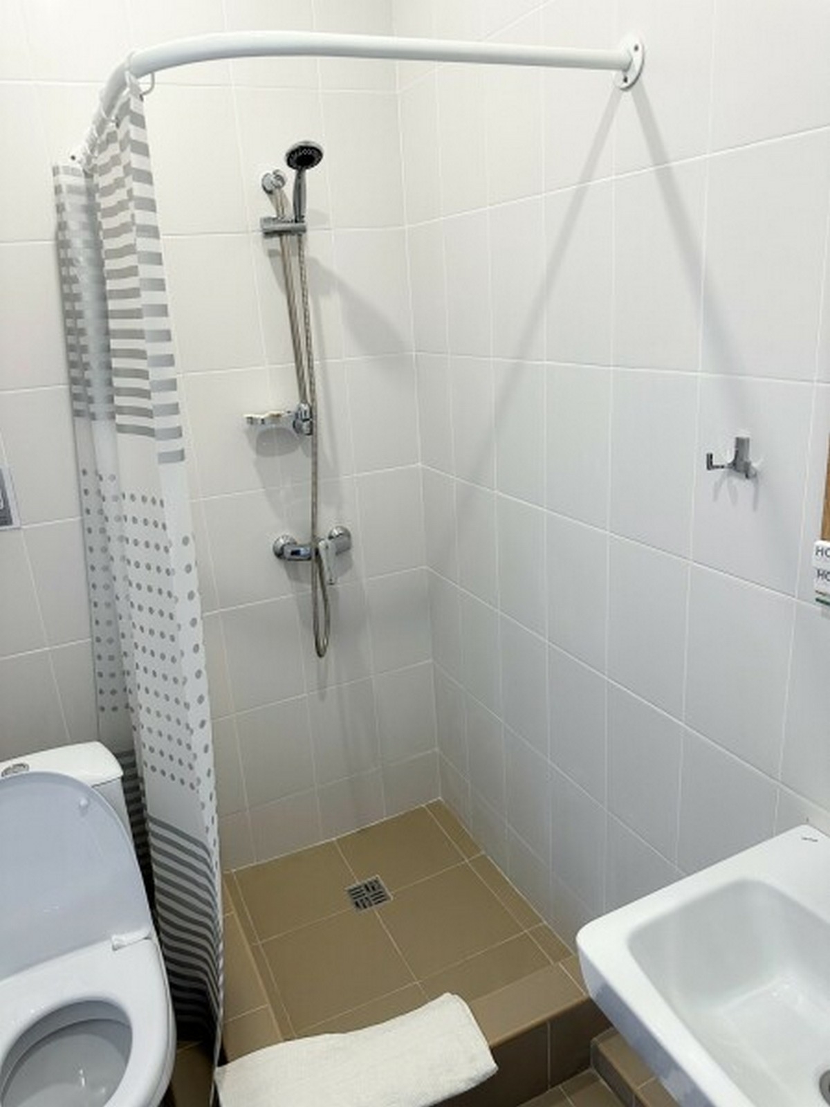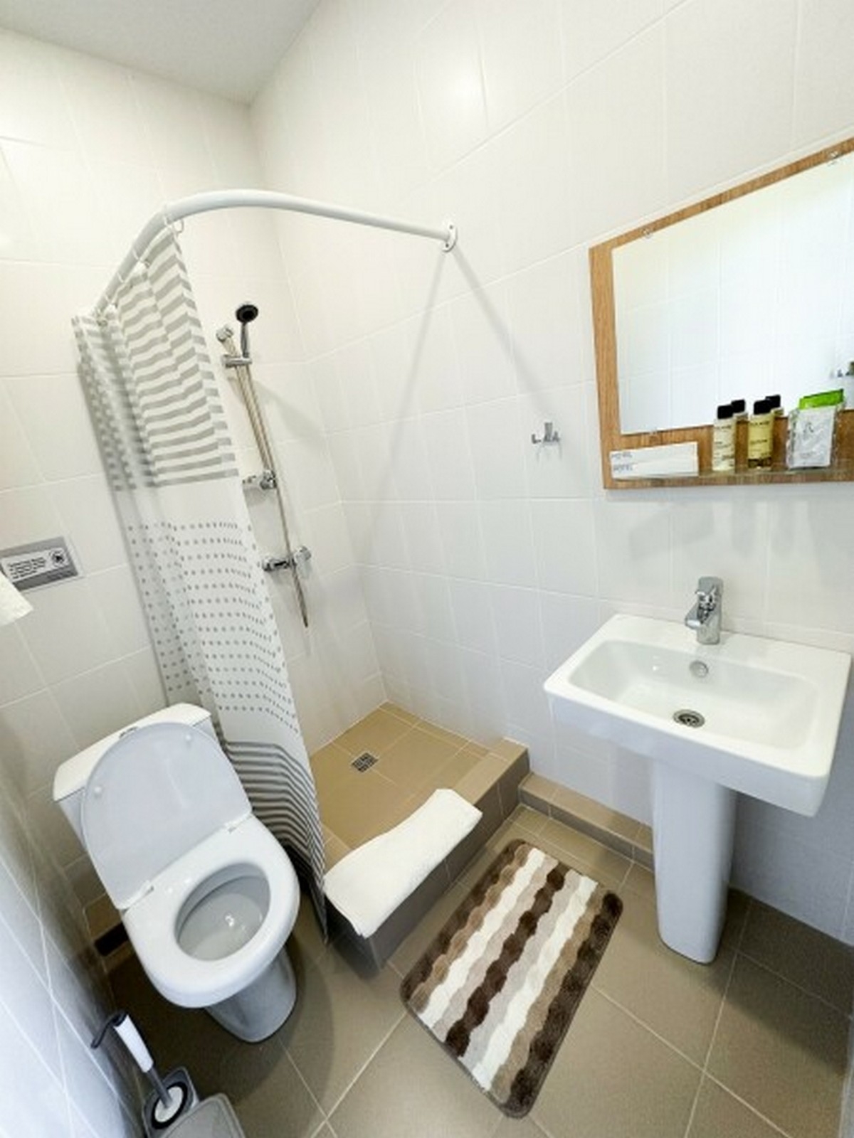 Индивидуальная ванная комната: душ, раковина, туалет, ванные принадлежности (шампунь, гель для душа, мыло, зубной набор)